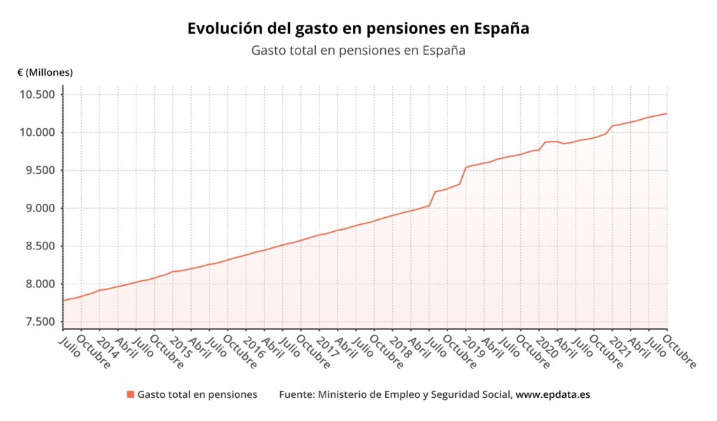 El gasto en pensiones sube un 3,2% en octubre y alcanza la cifra récord de 10.251 millones