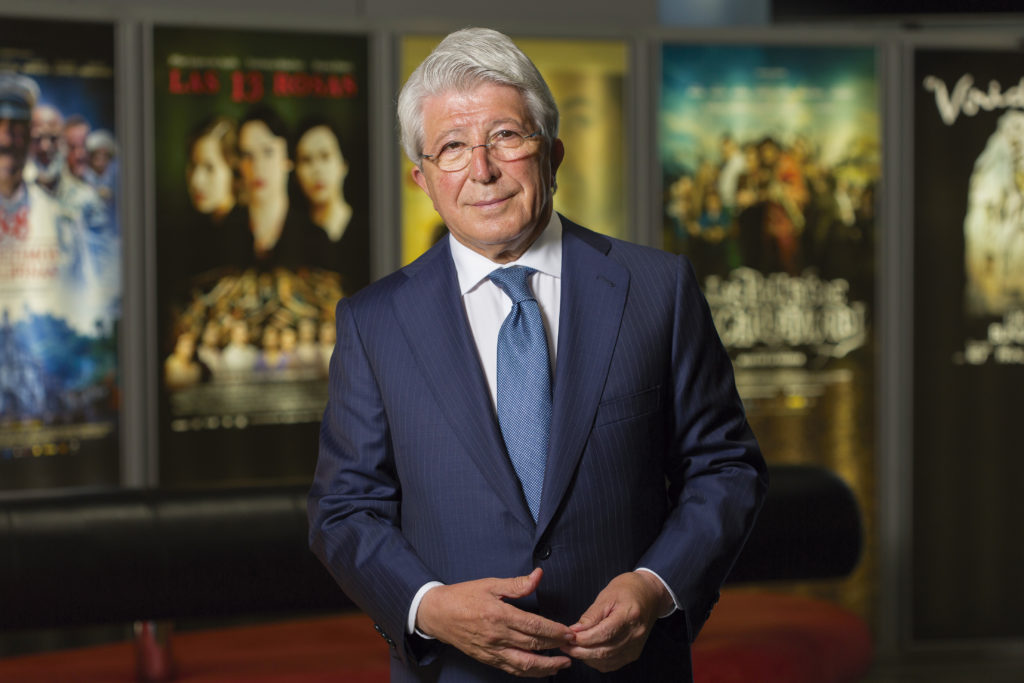 Hemos pasado de producir 45 películas al año a 12. De hecho, teníamos pensado haber rodado La piel del tambor, de Arturo Pérez Reverte, y la vamos a intentar producir ahora. No porque tengamos problemas económicos, sino por los problemas que han derivado de la pandemia. Queremos estar seguros con el trabajo de los actores y de todo el equipo”, subraya el también presidente del Atlético de Madrid, quien argumenta que “todo el mundo ha sufrido como en España la bajada del público en las salas, pero también creo que la bajada de espectadores no es un problema”.