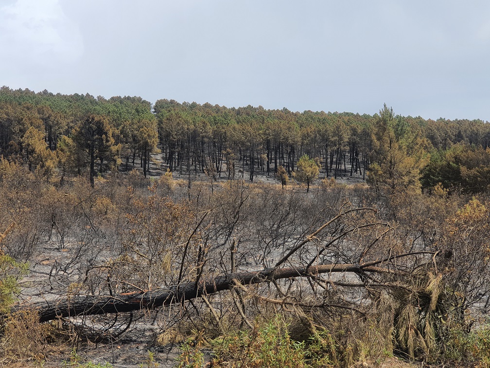 La virulencia del incendio quedó reflejada inmediatamente en el terreno. Andrés comenta que la masa forestal de la comarca de Aliste ocupa 104.000 hectáreas (1.040 kilómetros cuadrados). Recordemos que las tres comarcas juntas sobrepasan los 2.000 kilómetros cuadrados de extensión. Es decir, la mayor parte del terreno está cubierto de árboles o de vegetación.